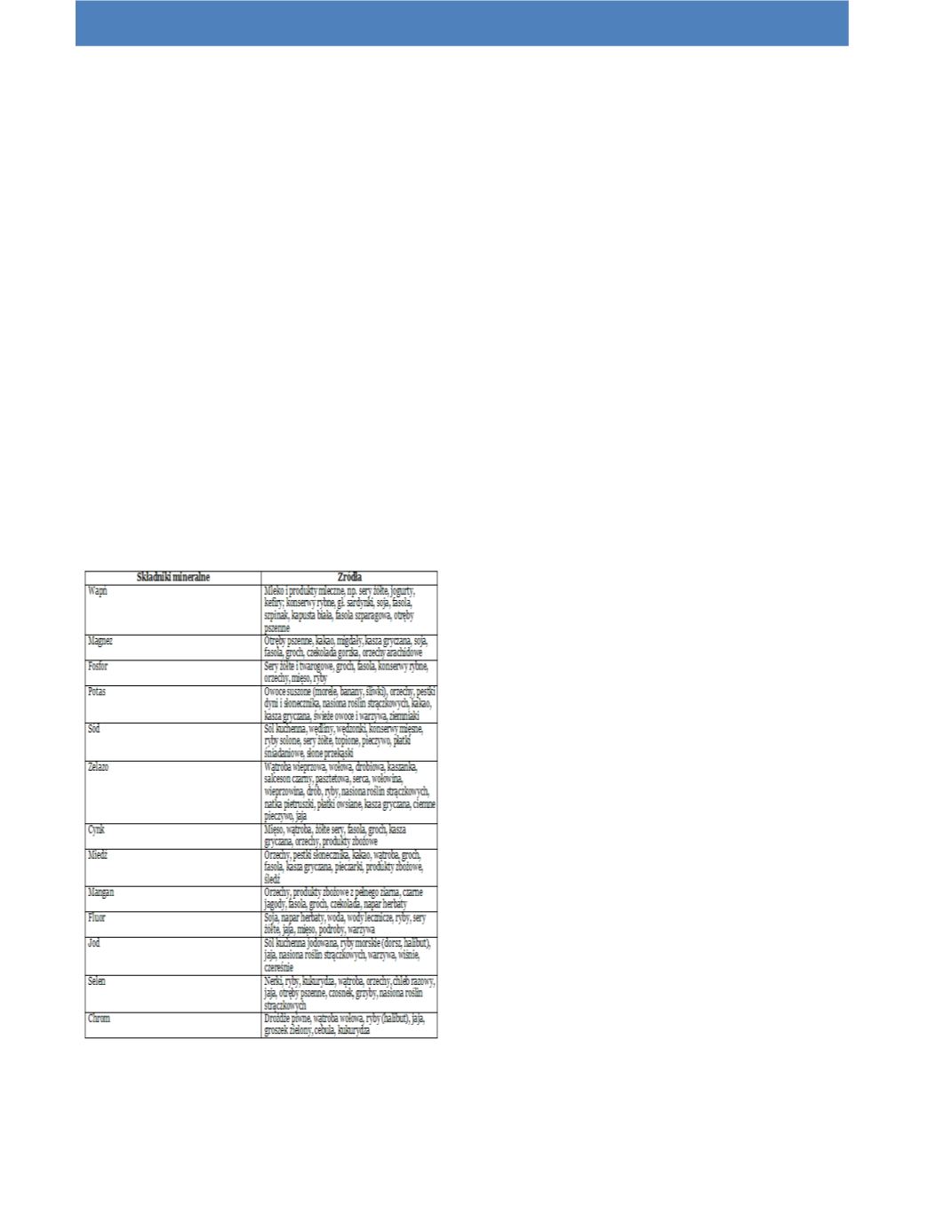 Tabela 1. Źródła składników mineralnych w