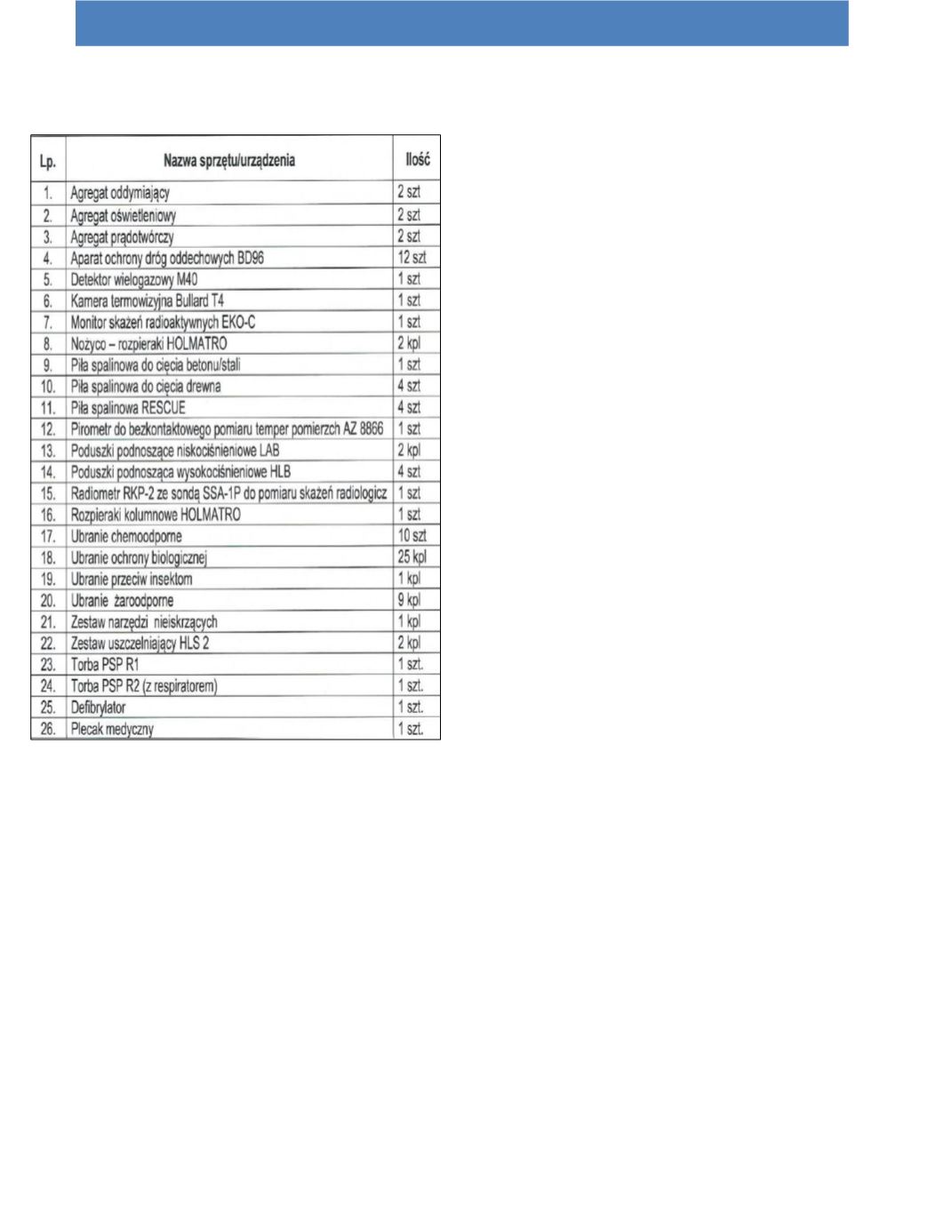 Tabela 2. Elementy wyposażenia LSRG [4]